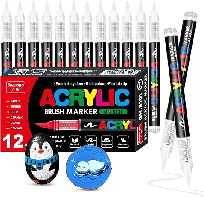🎨✍️ 12 White Acrylic Paint Pens – Waterproof Brush Markers ✍️🎨Unleash your creativity on any surface! 🌟✔️ 12 White Acrylic Paint Pens – Smooth, bold & vibrant ink✔️ Multi-Surface Use – Perfect for rock, wood, glass, ceramic, stones, fabric, canvas & more 🪨🪵🖼️✔️ Waterproof & Long-Lasting – Designs stay sharp
