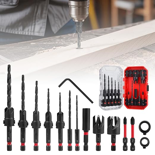 🛠️ Precision Woodworking Made Easy! 🌲Upgrade your toolkit with the 15-Piece Countersink Drill Bit Set — perfect for smooth, clean, and professional wood finishes! 🔩✅ Complete 15-Piece Set – Includes tapered drill bits, 2 wood plug cutters, and depth stop rings for versatile use.✅ Quick-Change Design – Swap bits effortlessly and save time during projects.✅ Smooth Countersinking – Create clean, flush screw holes for a perfect finish.✅ Durable & Sharp – High-quality steel ensures long-lasting performance.✅ Convenient Storage Box – Keep everything organized and easy to carry.Ideal for carpenters, DIYers, and woodworking enthusiasts who demand precision and efficiency! 💪✨