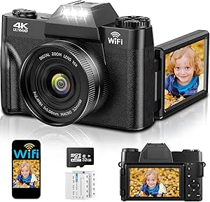 🎥 Capture Every Moment in 4K Clarity! 📸Unleash your creativity with this 4K Digital Camera — perfect for vlogging, photography, and everyday adventures!✨ Key Features:📸 75MP Ultra HD resolution for stunning detail🌐 Built-in WiFi for instant sharing to your phone or social media🔄 3-Inch 180° Flip Screen — ideal for selfies and vlogs🔍 16X Digital Zoom & Autofocus for sharp, vibrant shots🔋 Comes with 2 rechargeable 1500mAh batteries for longer use💾 32GB SD card included — start shooting right away!