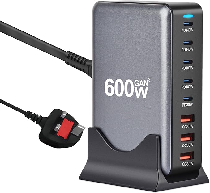 ⚡ 600W USB-C Fast Charger – 8-Port GaN Charging Station Hub! ⚡Power up all your devices at once with this High-Speed 600W USB-C GaN Charger Hub! Designed with the latest GaN technology, it delivers efficient, safe, and ultra-fast charging for all your gadgets. 🔋🚀✅ Features:🔌 8 Smart Charging Ports – Power multiple devices simultaneously (USB-C & USB-A)⚡ 600W Super Fast Output – Ideal for laptops, tablets, and smartphones💻 Wide Compatibility – Works with iPhone 16/15/14 series, MacBook Air, iPad Pro, Dell XPS, Samsung Galaxy S23/S22, and more🌡️ Advanced GaN Technology – Smaller, cooler, and more energy-efficient