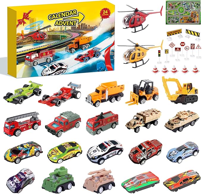 🎄 Advent Calendar 2025 – A Christmas Countdown Full of Fun! 🚗✨Make this holiday season unforgettable with the Car Advent Calendar 2025 – the perfect gift for kids who love cars and construction fun!🎁 Features:✅ Includes 24 surprise diecast cars, trucks, and construction vehicles – one for each day leading up to Christmas!✅ Durable alloy toys built for endless imaginative play✅ Exciting Christmas countdown experience that keeps kids thrilled every morning✅ Perfect for boys, parties, and holiday gifts✅ Fun and educational – promotes creativity and motor skills