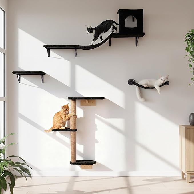 Give your cat the ultimate indoor playground with our Cat Wall Shelves – 4-in-1 Wall Furniture Set 🐾🖤