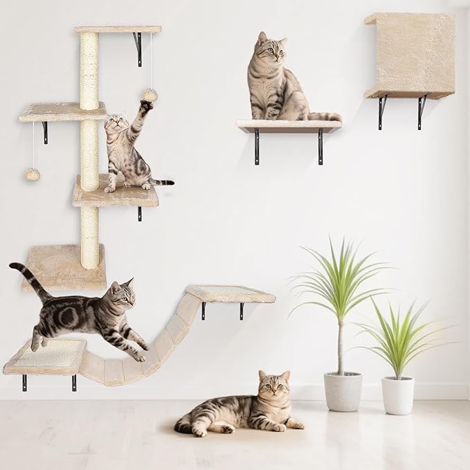 🐾 Wall Mounted Cat Furniture – The Ultimate Playground for Your Feline Friends! 🐾Give your cats a space of their own with this stylish and functional Cat Wall Furniture Set! Designed to keep your pets active, entertained, and comfortable all day long. 😻🏡 Features:✅ Multi-Level Design – Includes 4-step climbing shelves, cozy cat house, soft hammock, and fun hanging ball.✅ Space-Saving Wall Mounted Style – Perfect for small apartments or modern homes.✅ Durable Scratching Post – Keeps claws healthy and protects your furniture.✅ Comfort & Play in One – Encourages exercise and satisfies natural climbing instincts.Create a fun indoor cat paradise that keeps your furry friends happy, healthy, and entertained! 🐱
