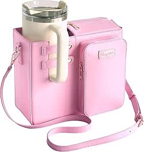 Introducing the Crossbody Bag for Stanley Cup โ€” the perfect Water Bottle Holder with Adjustable Shoulder Strap in a cute Pink design! ๐Ÿ’–