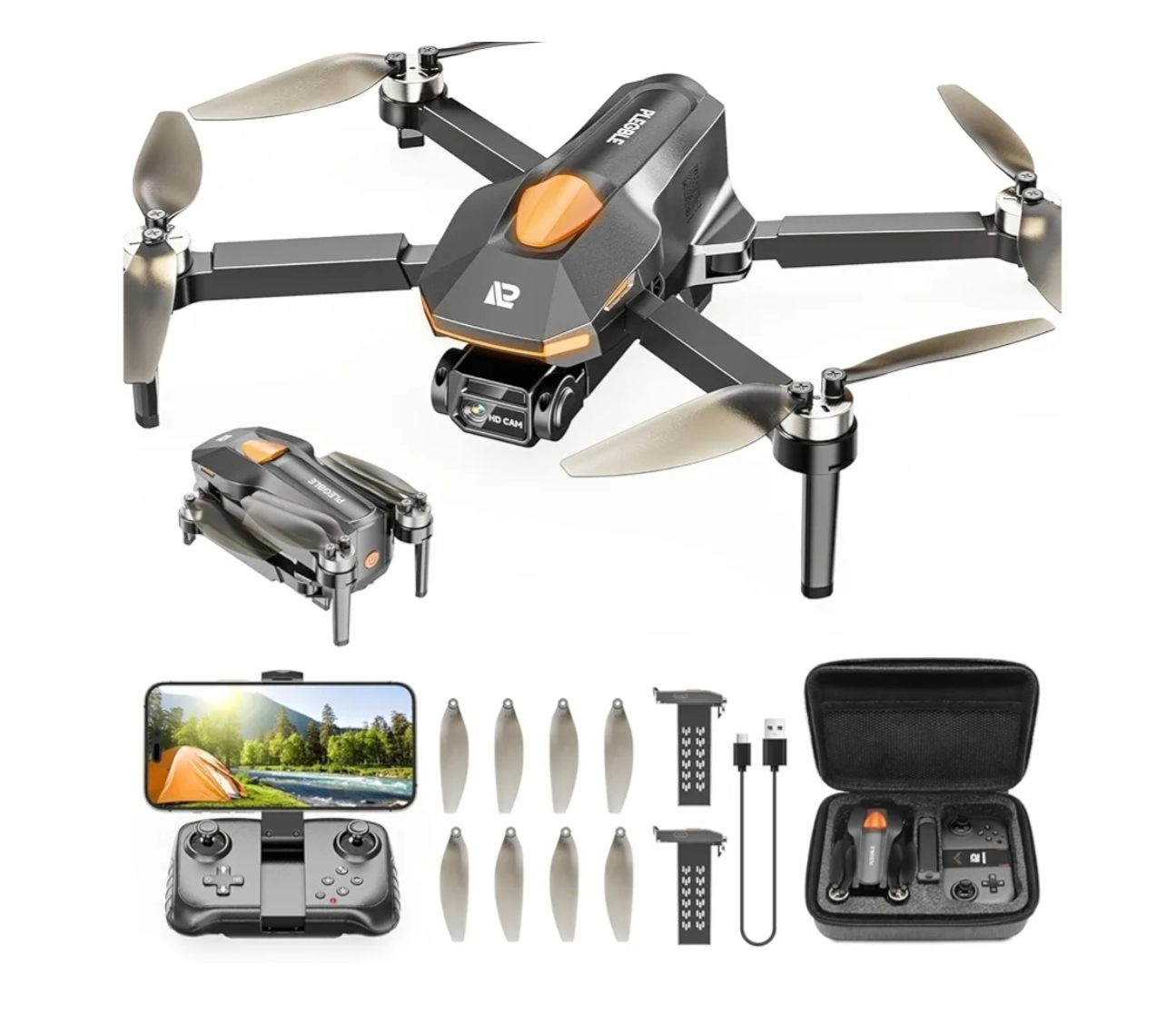 High-Performance Brushless Motor: Quieter, longer life, and more stable flight compared to brushed alternatives.Foldable & Compact Design: Easy to carry—fits in backpacks or gift boxes; perfect for travel and outdoor fun.HD WiFi Camera: Live video streaming to your phone; capture photos and videos with a tap.Smart Flight Modes: Tap Fly for intuitive direction control, Voice Control for hands-free commands, and Gesture Photography to snap selfies with a wave.Beginner-Friendly: One-key takeoff/landing, altitude hold, and headless mode make it easy for kids and adults to fly right out of the box.Durable & Safe: Built with crash-resistant materials; includes propeller guards to protect beginners.
