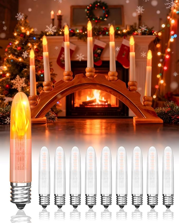 🎄 E10 LED Christmas Candle Bulbs – 10 Pack ✨Bring warm, festive light to your home with these E10 LED Flickering Flame Candle Bulbs! Designed to mimic a real candle flame, they add a cozy, traditional glow to your Christmas candle bridges, arches, and candlesticks.💡 Product Features:✅ Soft flickering flame effect – warm and realistic✅ Low energy use – only 0.2W, [Energy Class A]✅ Works with AC 15–55V power supply✅ Long-lasting, durable & non-dimmable design✅ Perfect replacement for Christmas candle lightsAdd a touch of magic to your holiday decorations with these energy-efficient LED bulbs — safe, beautiful, and built to last! 🎅✨