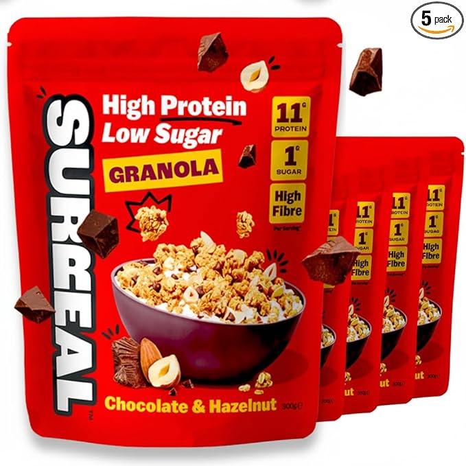 💪 High Protein, Low Sugar Granola – Chocolate & Hazelnut 🍫🌰Fuel your day the smart way with our High Protein, Low Sugar Granola – a delicious mix of crunchy clusters, rich chocolate, and roasted hazelnuts. Perfect for breakfast or as a protein-packed snack anytime!✨ Why You’ll Love It:✅ 11g Plant-Based Protein per serving✅ Low in Sugar, High in Fibre✅ Vegan-Friendly & Natural Ingredients✅ Crunchy, chocolatey, and oh-so-satisfyingEnjoy it with milk, yogurt, or straight from the pack — it’s a healthy indulgence that fits your goals!🥣 Pack Size: 300g (Pack of 5)Your perfect guilt-free breakfast or post-workout snack! 🌱💚