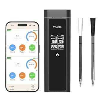 🔥 Master Your Cooking with the Wireless Meat Thermometer! 🍖Achieve perfect results every time with this Bluetooth Meat Thermometer, designed for BBQ, oven, smoker, grilling, and roasting. Connect to the app and cook like a pro! 📲✅ Dual probes – monitor two dishes or meat types simultaneously🌊 IP67 waterproof – durable for indoor and outdoor use📱 App-controlled – track temperature remotely on your smartphone⏱️ Fast & accurate readings – ensures perfectly cooked meals every time🍗 Ideal for BBQ lovers, chefs, and home cooksCook smarter, not harder — delicious results made easy! 🍴✨