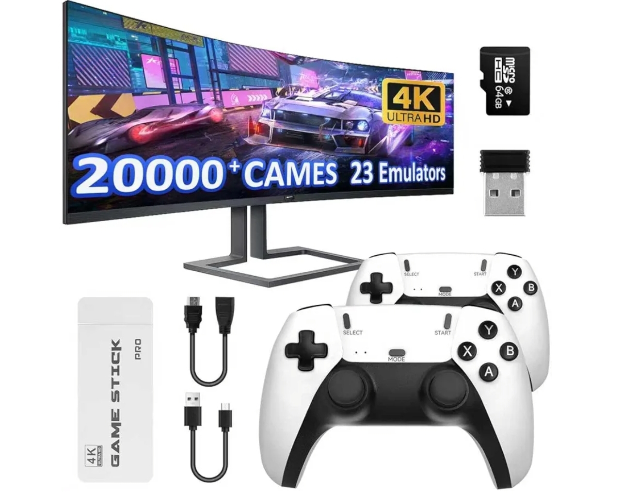 🎮 Retro Games Console – Relive the Classics! 🎮Step back in time with our Retro Games Console, packed with 20,000+ legendary games that will bring back all your favorite childhood memories! With 23 built-in emulators, you can enjoy a massive library of classic titles from multiple iconic gaming systems.✨ Features You’ll Love:✔️ Over 20,000 Pre-Loaded Games – endless fun for the whole family✔️ 4K HDMI Output – crisp, smooth visuals on any modern TV✔️ Plug & Play – no installation required, just connect and start playing✔️ 2 Wireless Controllers – enjoy seamless gaming with friends and family✔️ Compact TV Games Stick – powerful performance in a portable size