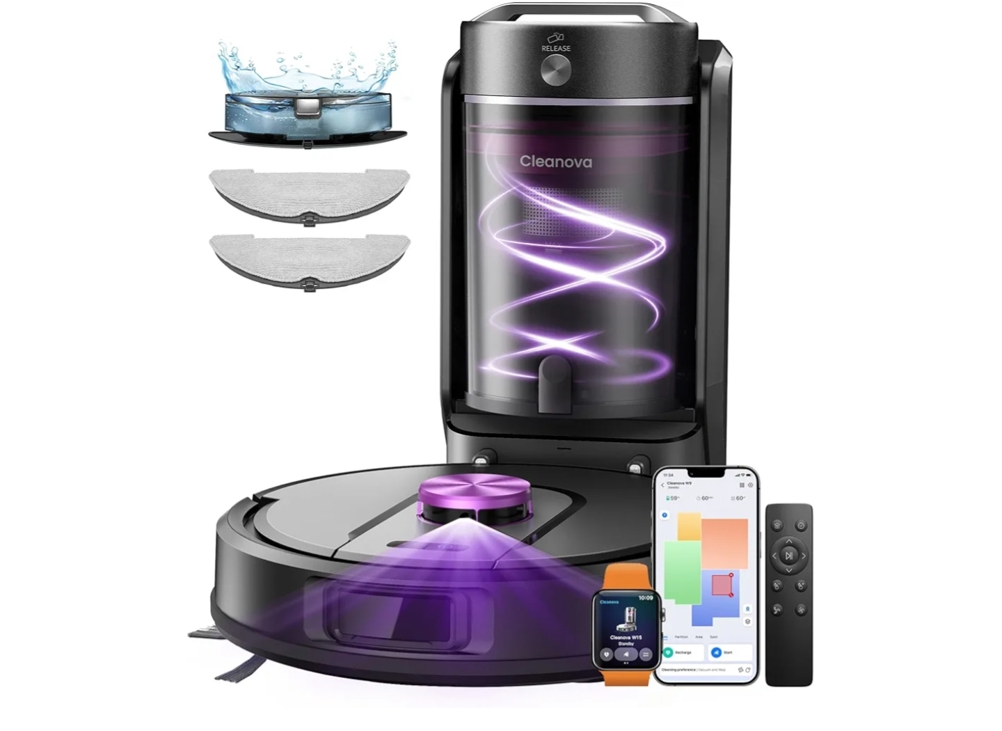 Experience effortless cleaning with the Robot Vacuum and Mop with Multi-Cyclone Bagless Self-Emptying Dock 🤖✨