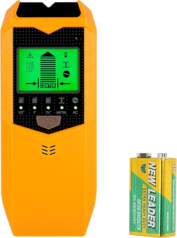🔍 5-in-1 Electronic Stud Finder Wall Scanner 🔍Make home improvement easier and safer with this multi-functional stud detector! This powerful 5-in-1 wall scanner accurately locates the center and edges of wood studs, metal pipes, and live AC wires behind walls — perfect for hanging shelves, TVs, cabinets, and more.✅ Features:📏 5 Detection Modes – Wood, Metal, Stud, Deep Stud, and AC Wire Detection🔋 Battery Included – Ready to use right out of the box🔔 Audio & Visual Alerts – Clear signal when a stud or wire is detected💡 HD LCD Display – Easy-to-read screen for precise location results🧱 Wide Application – Works on drywall, plaster, and other wall types